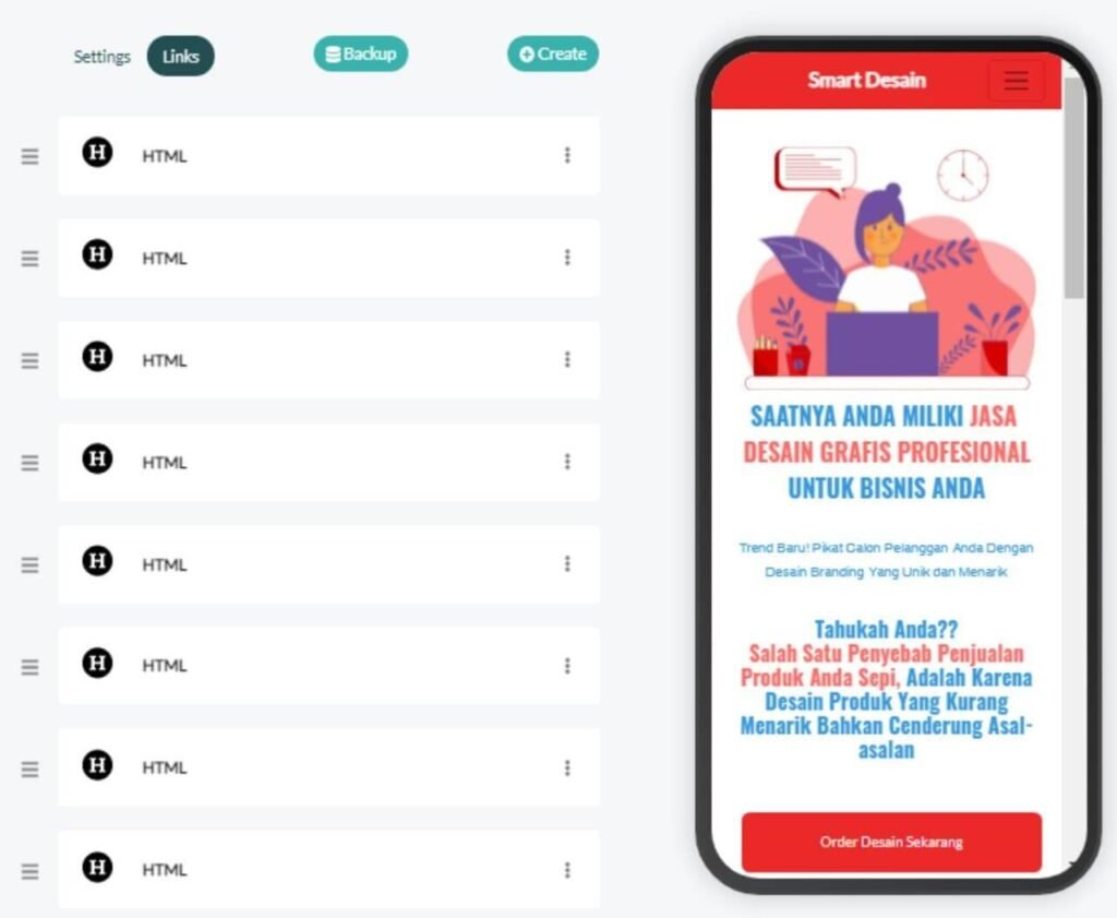 Kami punya solusinya,membuat landing page dengan APP Biolink tanpa harus bisa ngoding cukup dengan pilih template, Edit template dan Posting.