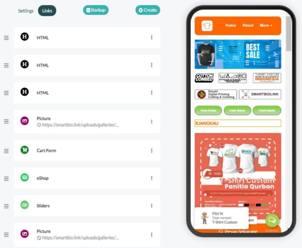Total 5 JSON Biolink untuk kebutuhan pembuatan Toko Online